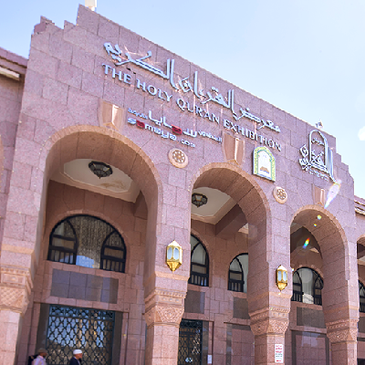 يقع معرض القرآن الكريم في واجهة القبة الخضراء أمام باب السلام المؤدي إلى الروضة الشريفة على مساحة 1500 متر مربع. ويهدف المعرض إلى تعريف الناس بكتاب الله تعالى عبر محتوى دقيق ومنظومة واسعة من التقنيات وفق أسلوب العرض المتحفي وإبراز جهود الدولة السعودية التاريخية والحديثة في العناية بالقرآن الكريم.